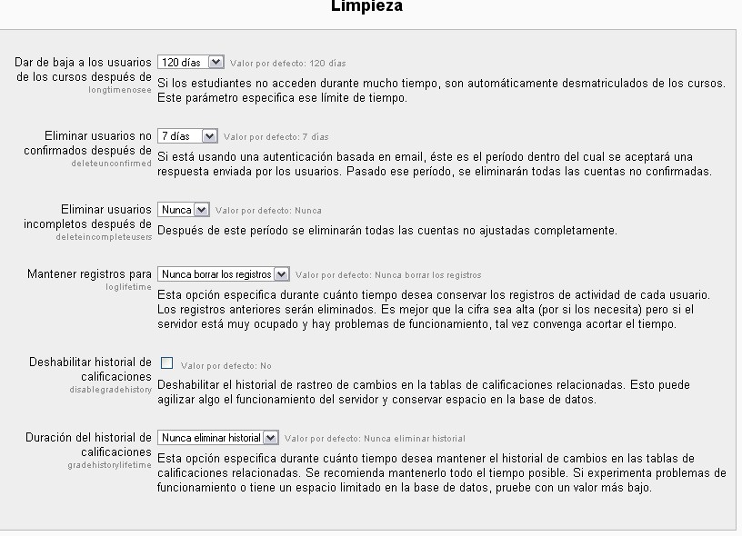 Ubicación: Administración> Servidor> Limpieza