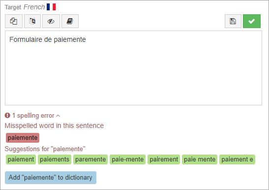 El corrector ortográfico incorporado ayuda a los traductores a evitar cometer errores de escritura y ortografía.
