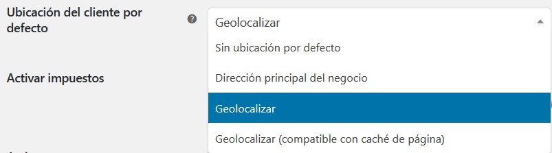 La ubicación del cliente por defecto quiere decir que se mostrarán los precios, impuestos y envíos en la tienda y el carrito considerando esa ubicación, a no ser que el cliente indique lo contrario.