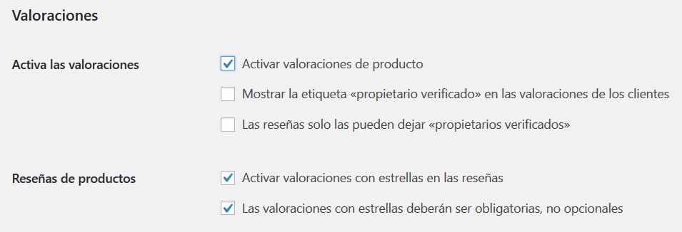 • Activar valoraciones con estrellas en las reseñas