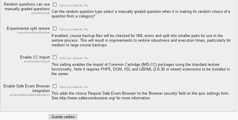 Ubicación: Administración> Misceláneas> Experimental