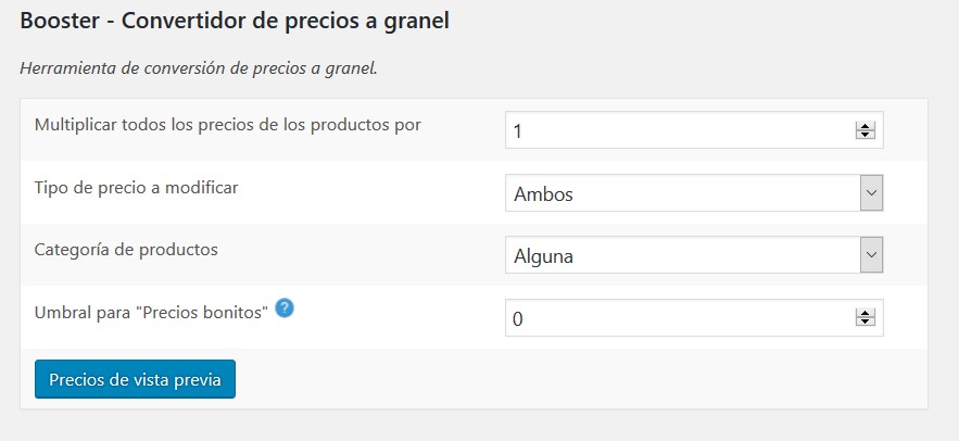 Convertidor de precios a granel: