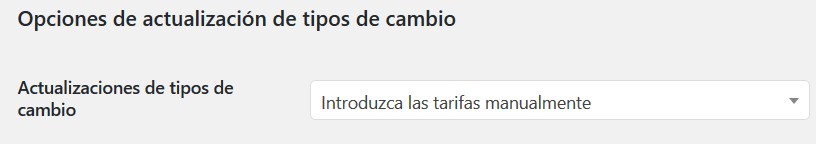 - Opciones de actualización de tipos de cambio