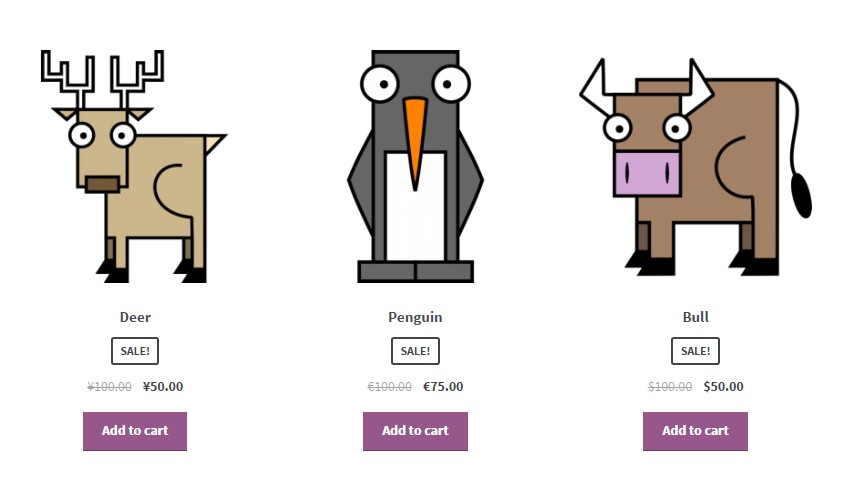Como se puede observar, los productos tienen diferentes tipos de monedas que en este ejemplo son yenes, euros y dólares.