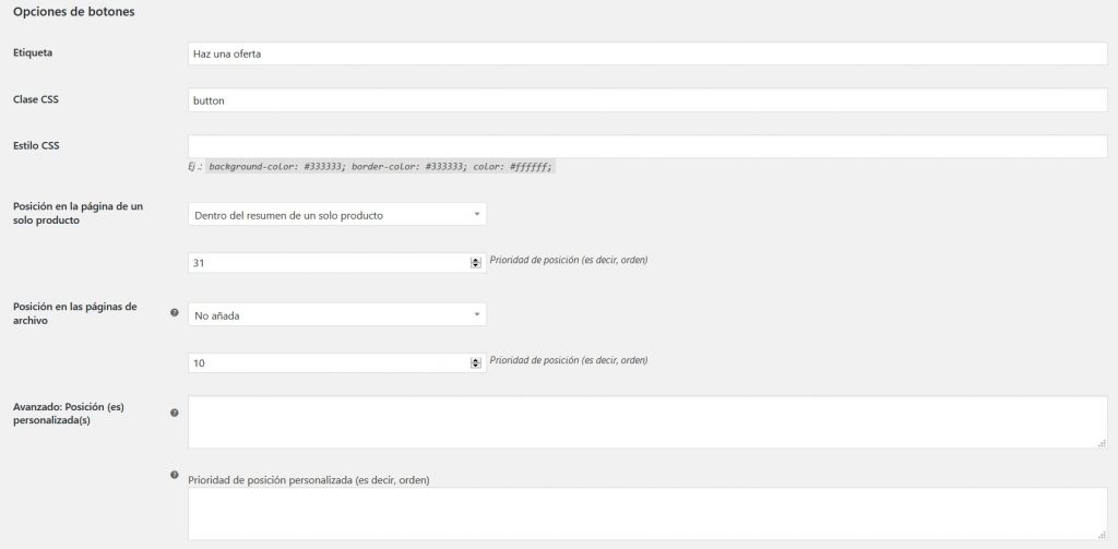 - Etiqueta: Etiqueta del botón del formulario (Predeterminado: Hacer una oferta)