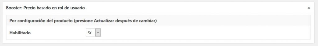 - Habilitar el Módulo en TecnoCommerce > Ajustes > Booster > Precios y Monedas > Precio basado en rol de usuario