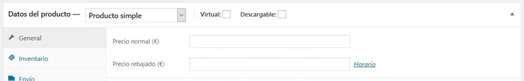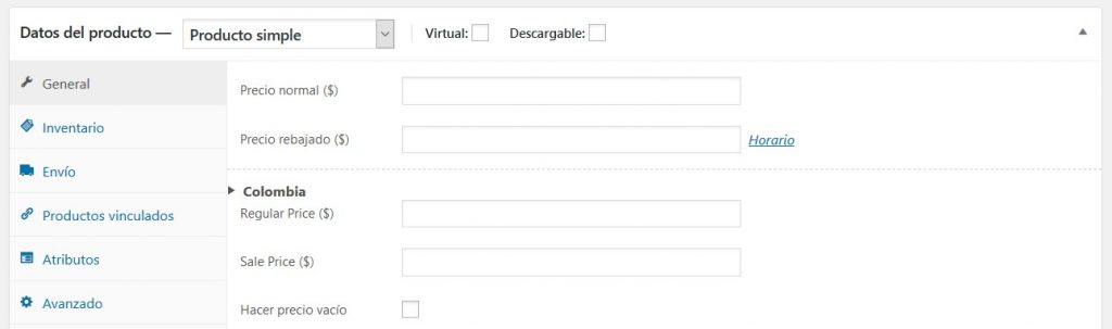 Luego de guardar estas opciones, en la configuración de los productos aparecerá una sección como esta: