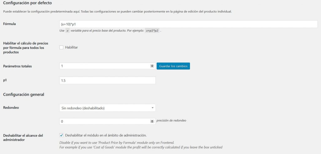 Este módulo le permite establecer una fórmula para el cálculo automático del precio del producto.