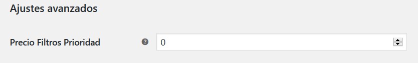 - Avanzado – Filtros de precios de prioridad: Prioridad para todos los módulos de filtros de precios. Colocarlo en cero para usar la prioridad predeterminada.