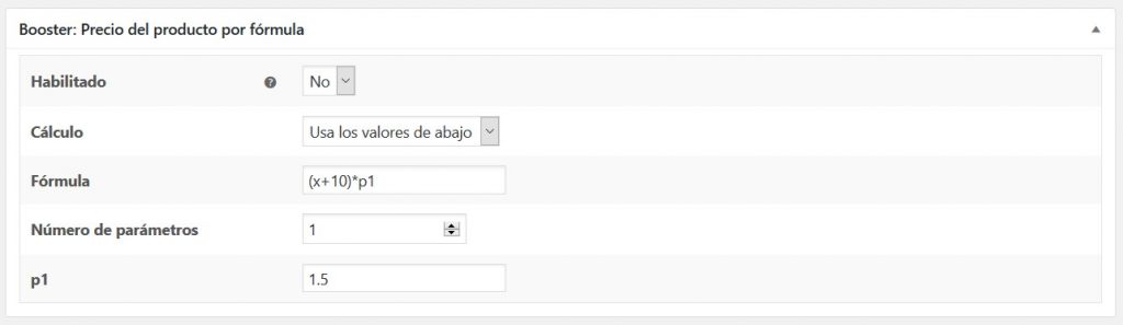 La mejor manera de explicar cómo funciona este módulo es ver un ejemplo. Digamos que desea calcular automáticamente el precio final del producto: tiene un producto cuyo costo de compra es X y siempre paga una tarifa de $10 al comprarlo. También desea agregar un margen de beneficio del 50% al precio final. En ese caso, la fórmula para el cálculo del precio final sería (X+10)*1,50.