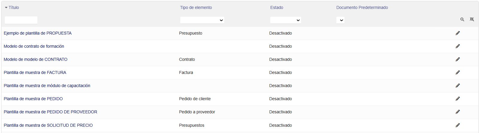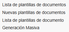- Lista de plantillas de documentos: muestra el listado de todas las plantillas existentes.