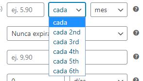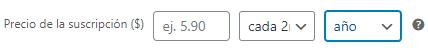 Al momento configurar el precio, se debe configurar la recurrencia y la periodicidad.
