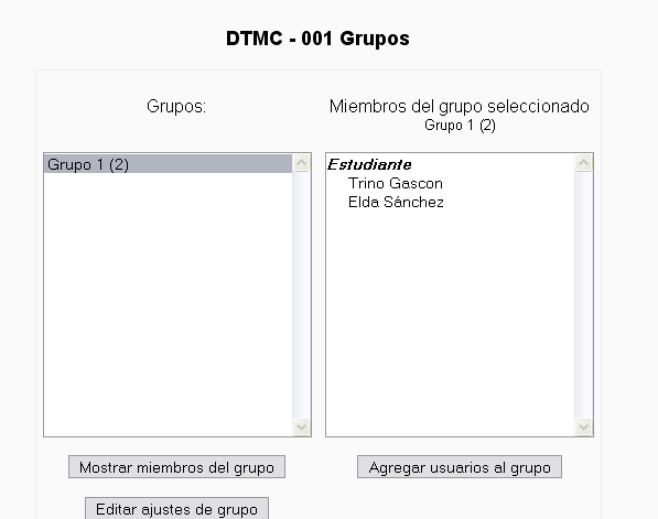 - Miembros: relaciona los miembros del grupo seleccionado en la lista de grupos.