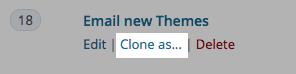 Clonar como: clona una copia exacta de un correo electrónico existente con un nombre recién definido. Esta característica es útil cuando se crea un nuevo correo electrónico que es ligeramente diferente del que se está clonando. En lugar de reiniciar y repetir todo el procedimiento de creación de correo electrónico (escribir contenido, etc.), se pueden hacer algunos cambios en la copia clonada y está listo para recibir un nuevo correo electrónico.
