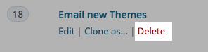 Un correo electrónico se puede editar, clonar o eliminar en cualquier momento colocando el cursor sobre el nombre del correo electrónico y haciendo clic en la opción. El tipo de “Correo electrónico único” tiene una opción adicional para Enviar.