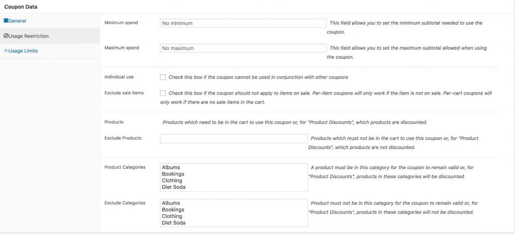 - Seleccione el botón Agregar cupón. Esto abre una página con opciones y campos de texto.