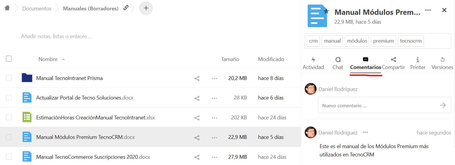 Utilice la vista Detalles para agregar y leer comentarios en cualquier archivo o carpeta. Los comentarios son visibles para todos los que tienen acceso al archivo.