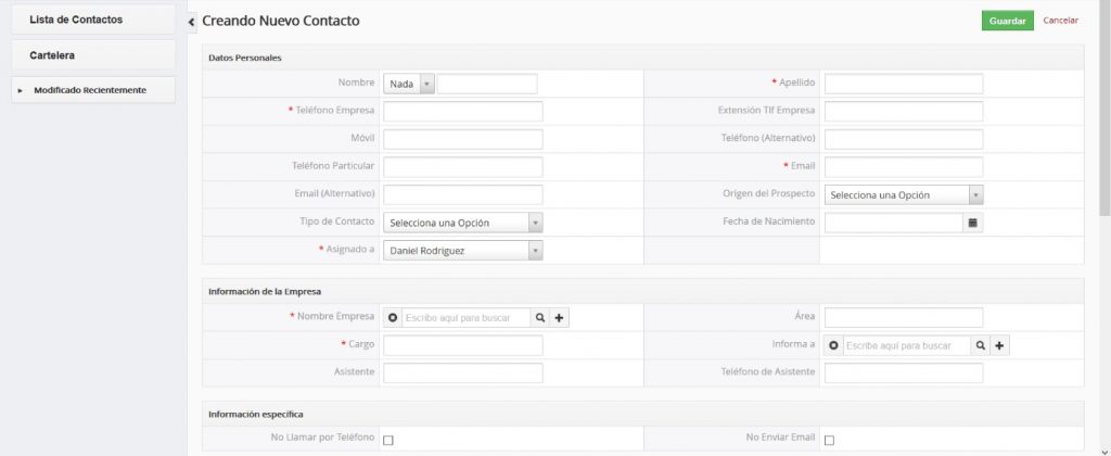 Notificar al Propietario: Cuando usted marca esta casilla, se informará vía email al dueño del contacto cada vez que se cambien los datos.
