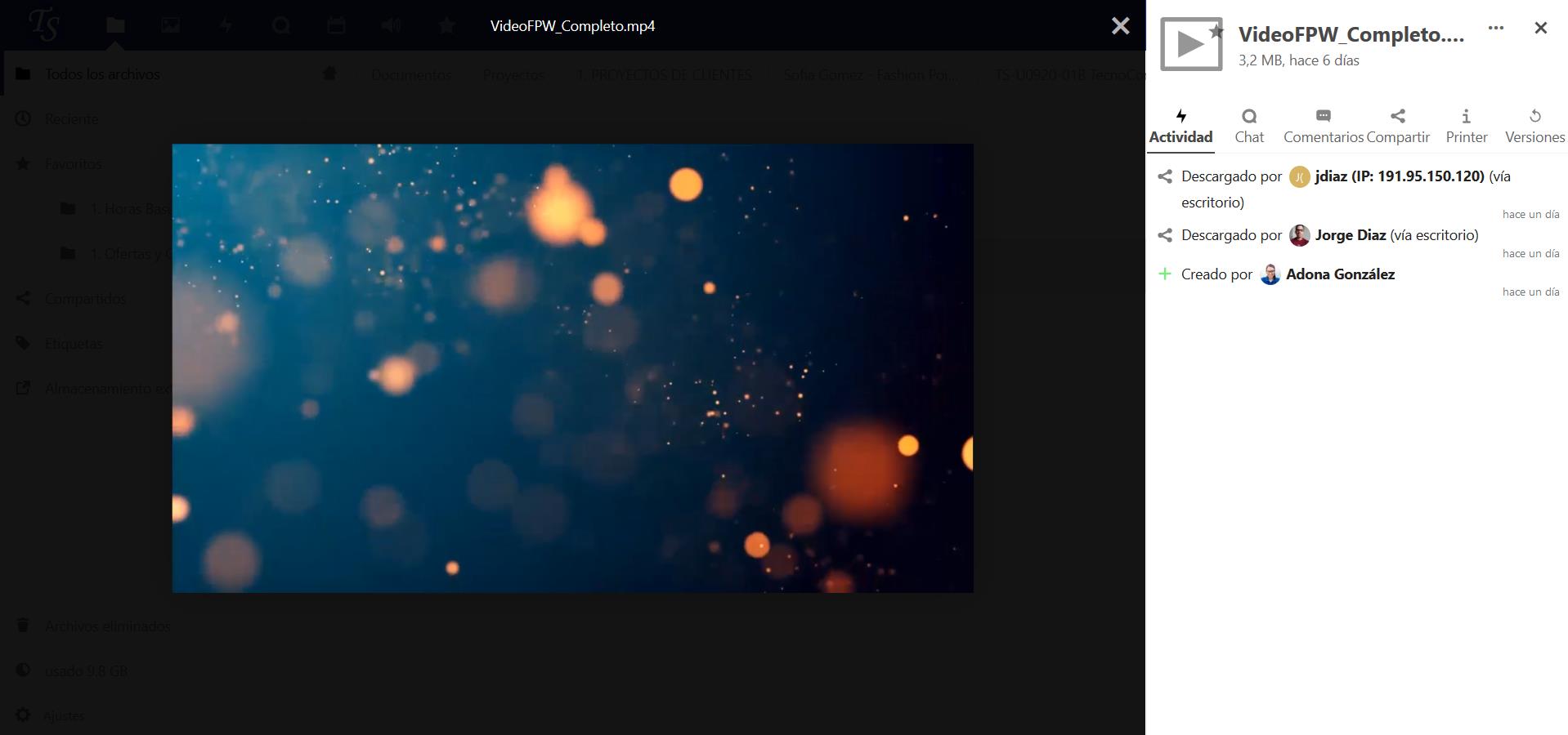Puede reproducir videos en TecnoCloud con la aplicación Video Player simplemente haciendo clic en el archivo. La transmisión de video por el reproductor de video nativo de TecnoCloud depende de su navegador web y del formato de video. Si su administrador de TecnoCloud ha habilitado la transmisión de video y no funciona en su navegador web, puede ser un problema del navegador. Consulte https://developer.mozilla.org/en-US/docs/Web/HTML/Supported_media_formats#Browser_compatibility para conocer los formatos multimedia compatibles en los navegadores web.