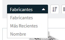 - Ordenar por: Muestra el listado de los productos por Nombre (en orden alfabético), Fabricante o los más recientes (Últimos), en forma ascendente o descendente.