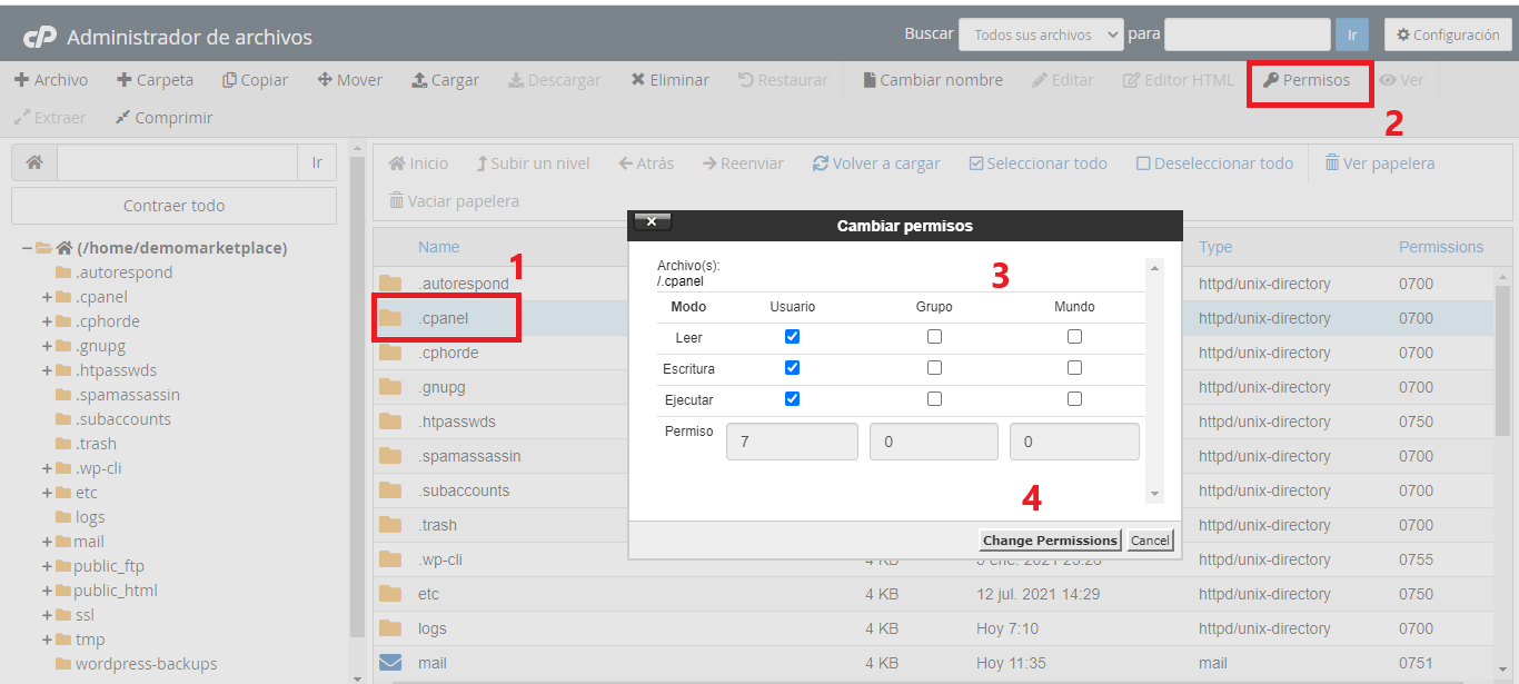 0644. - Haga clic en Cambiar permisos para guardar sus cambios.