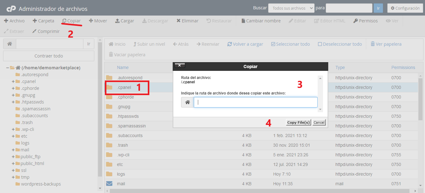- Haga clic en Copiar archivo (s) para copiar los archivos.