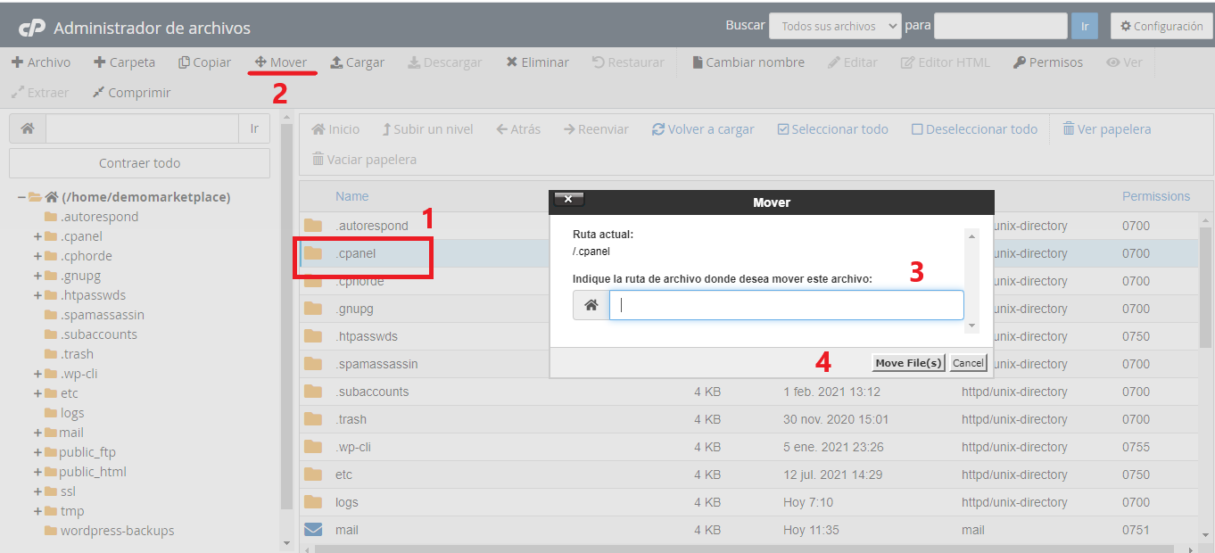 Mover archivos o carpetas