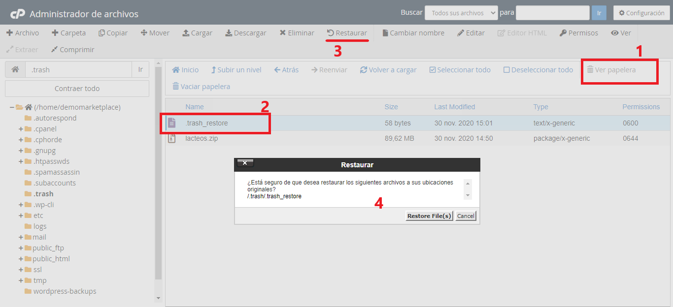 - Confirme que desea restaurar el elemento.