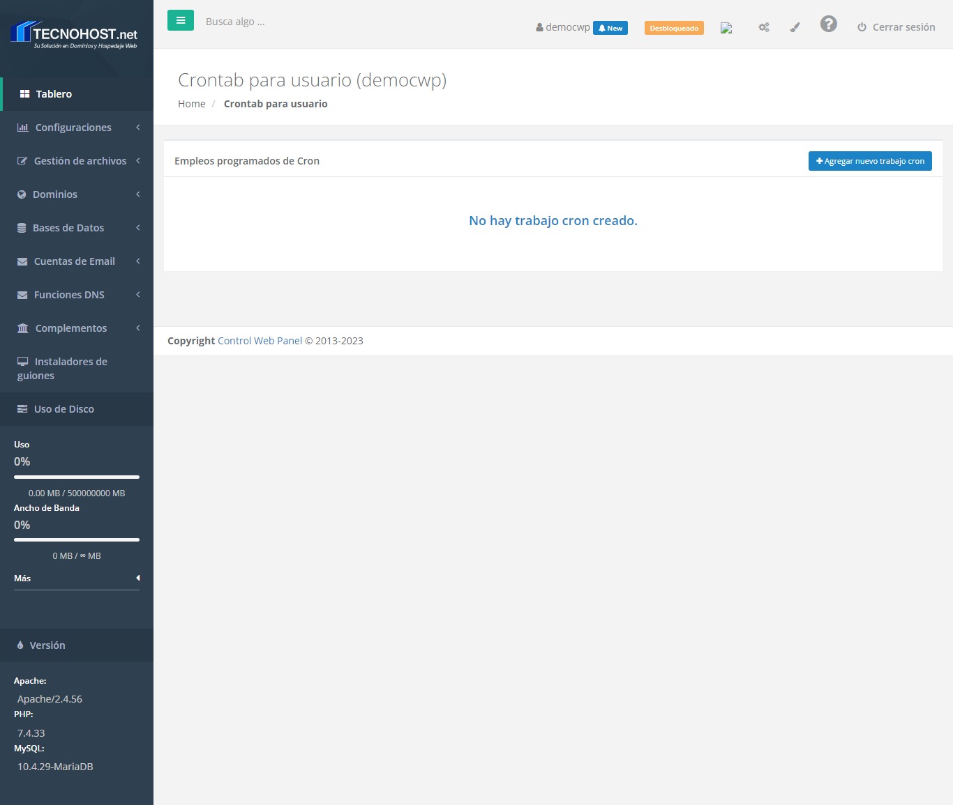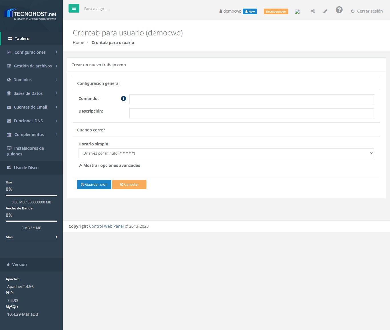 Este módulo le permite crear tareas programadas para ser ejecutadas en el tiempo que desee.
