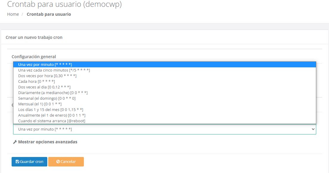 Haz clic en Guardar cron.