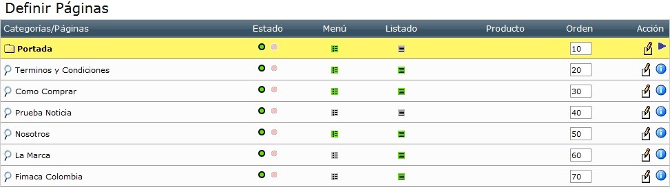 - Cola: Orden en que será listado con respecto a las otras páginas (1: primero, 2: segundo,…)