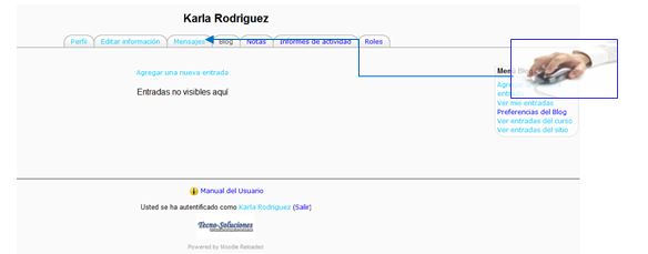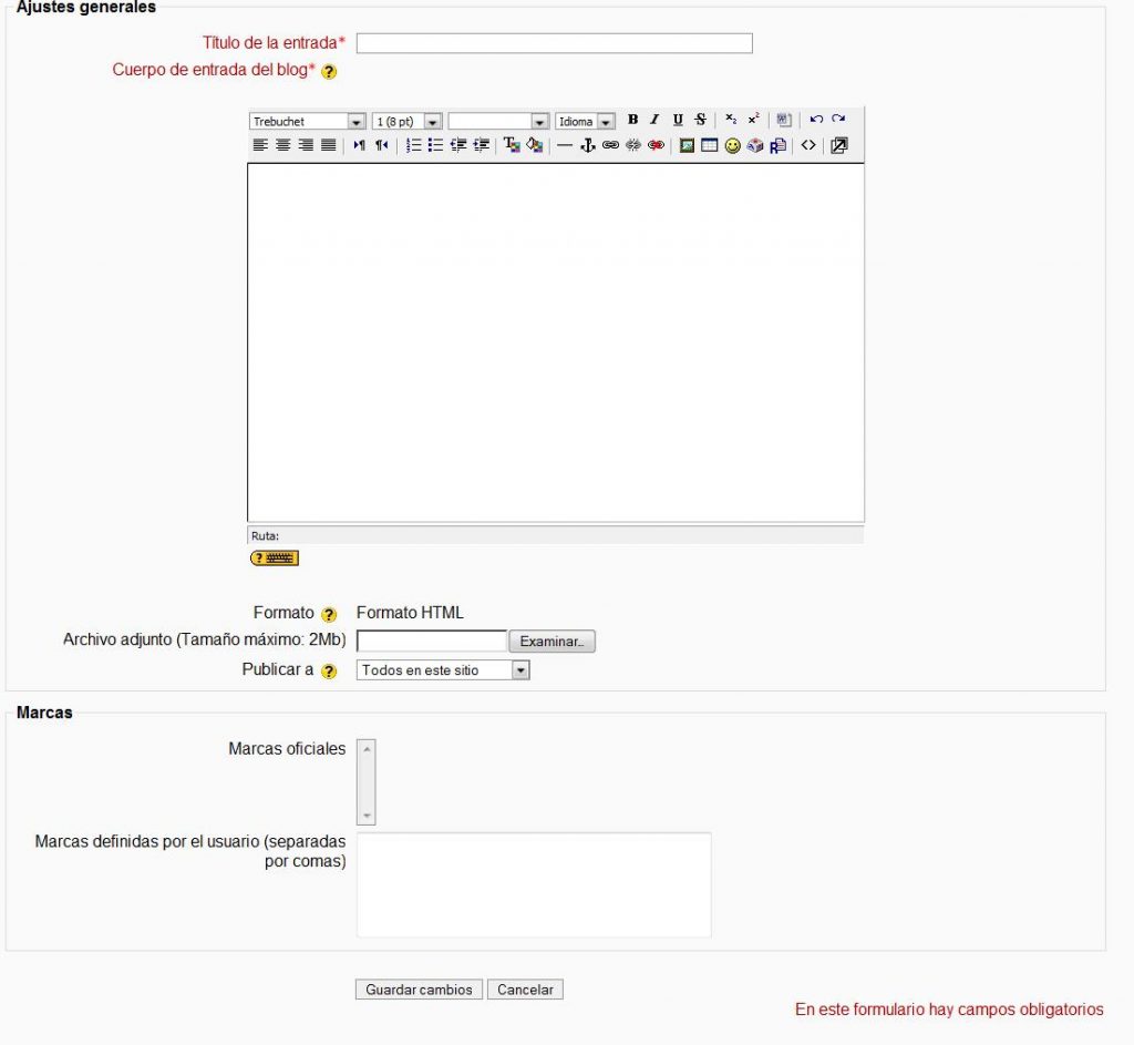 Cada usuario tiene su propio Blog. Los administradores, los profesores, y los usuarios pueden crear sus marcas o etiquetas.