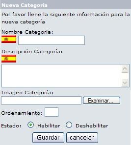 Para agregar una categoría, debe hacer click en “nueva categoría” y llenar el formulario que aparece en el lado derecho de la pantalla. Si se desea crear una Subcategoría, debe seleccionar previamente la categoría y hacer click en “nueva categoría”, de esta manera se añadirá un nuevo subtítulo dentro la categoría indicada.