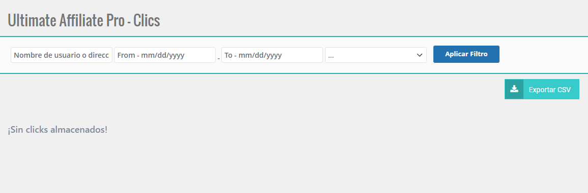 En este apartado lleva un registro de todos los clics realizados en la plataforma a través de los enlaces de afiliados, tanto si fueron “sólo vista” o si con conversiones.