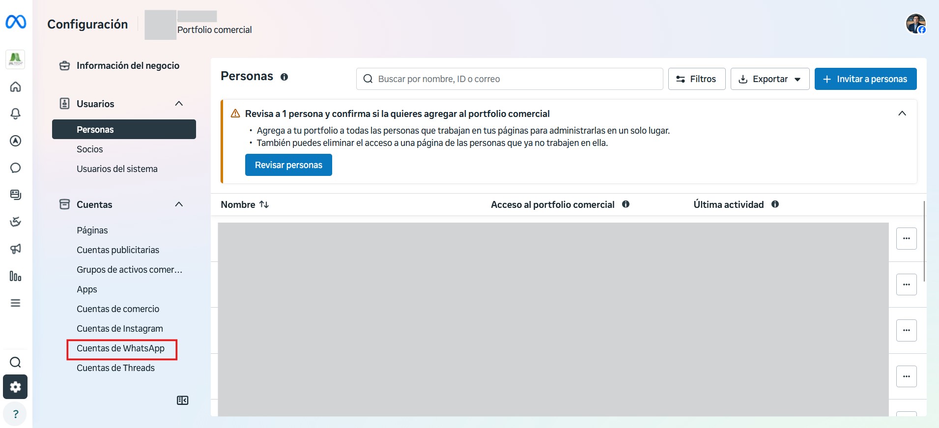 Ahora navegue a las opciones de Personas > Cuentas de WhatsApp como se muestra en la captura de pantalla a continuación.