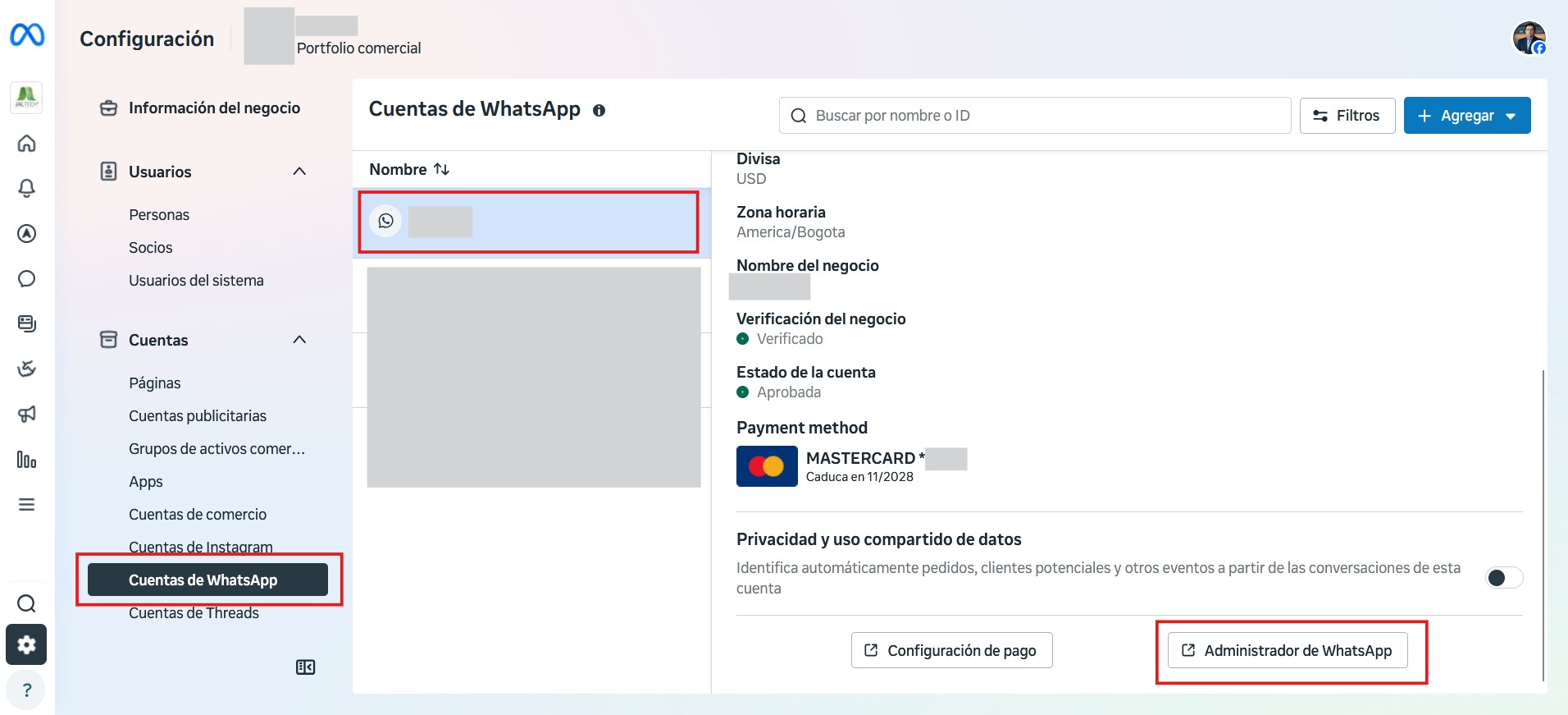 Haga clic en Cuenta de WhatsApp en la barra lateral y luego seleccione la cuenta de WhatsApp y haga clic en el enlace “Administrador de WhatsApp”. como se muestra en la captura de pantalla a continuación.