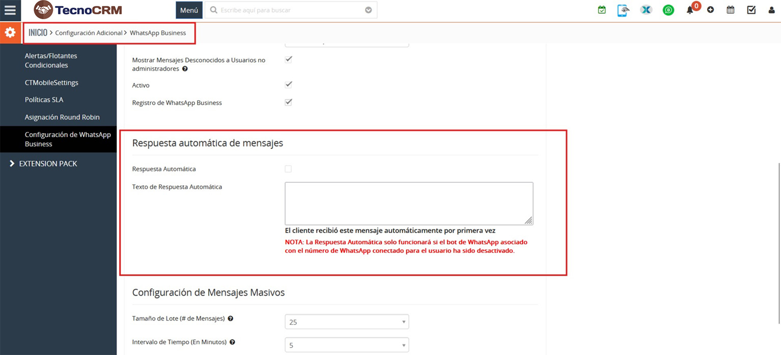 Nota: La respuesta automática solo funciona si el chatbot está desactivado para el usuario y la conversación está en manos de un agente.