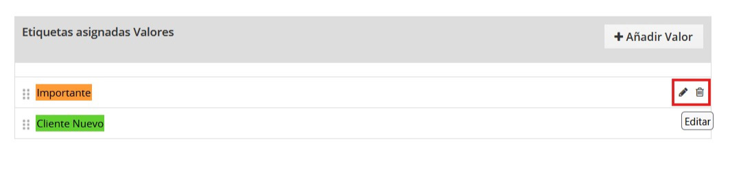 Para editar o eliminar cualquier etiqueta, haga clic en el icono resaltado correspondiente.