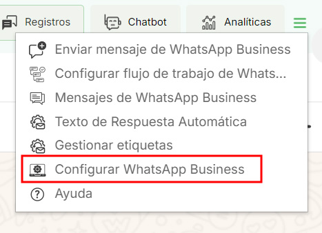 Al hacer clic en “Configurar WhatsApp Business”, el usuario será redirigido a la página de configuración de WhatsApp Business.