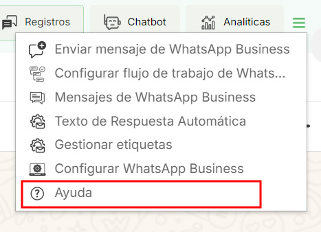Cuando el usuario hace clic en “Ayuda,” se le redirige al contenido correspondiente de ayuda para comprender cómo instalar y utilizar la integración de WhatsApp Business.