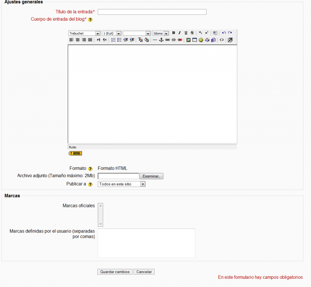 - Cada usuario tiene su propio Blog. Los administradores, los profesores, y los usuarios pueden crear su marcas o etiquetas