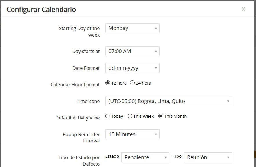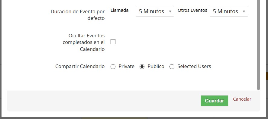 - Compartir el Calendario con cualquier usuario de TecnoCRM basado en las Preferencias: