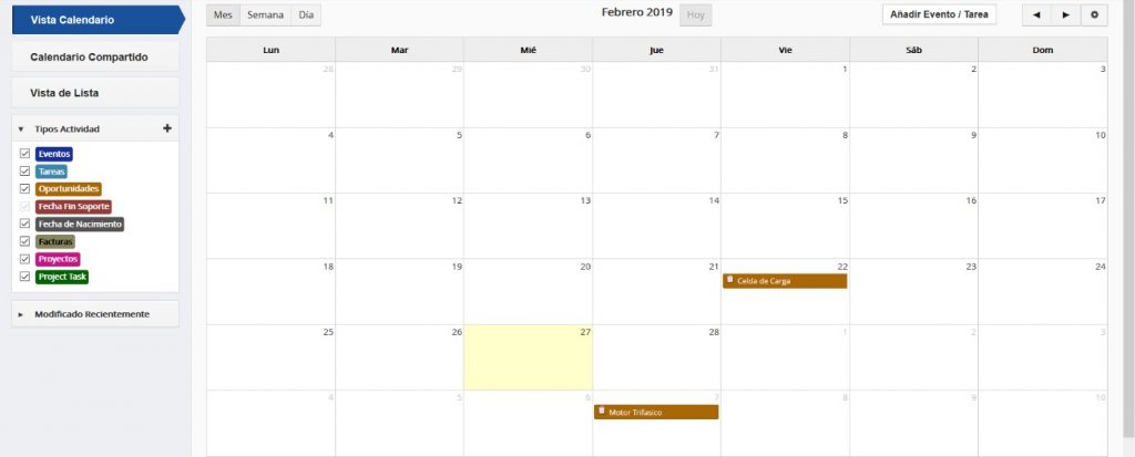 Finalmente, haga clic en [Guardar] para transferir el evento planeado a TecnoCRM. Como resultado verá el evento en su calendario.