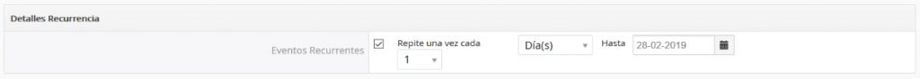 Adicionalmente, TecnoCRM permite que usted programe eventos repetidos (que ocurren en forma recurrente). Haga clic en la pestaña [Repetir] para hacer sus ajustes.