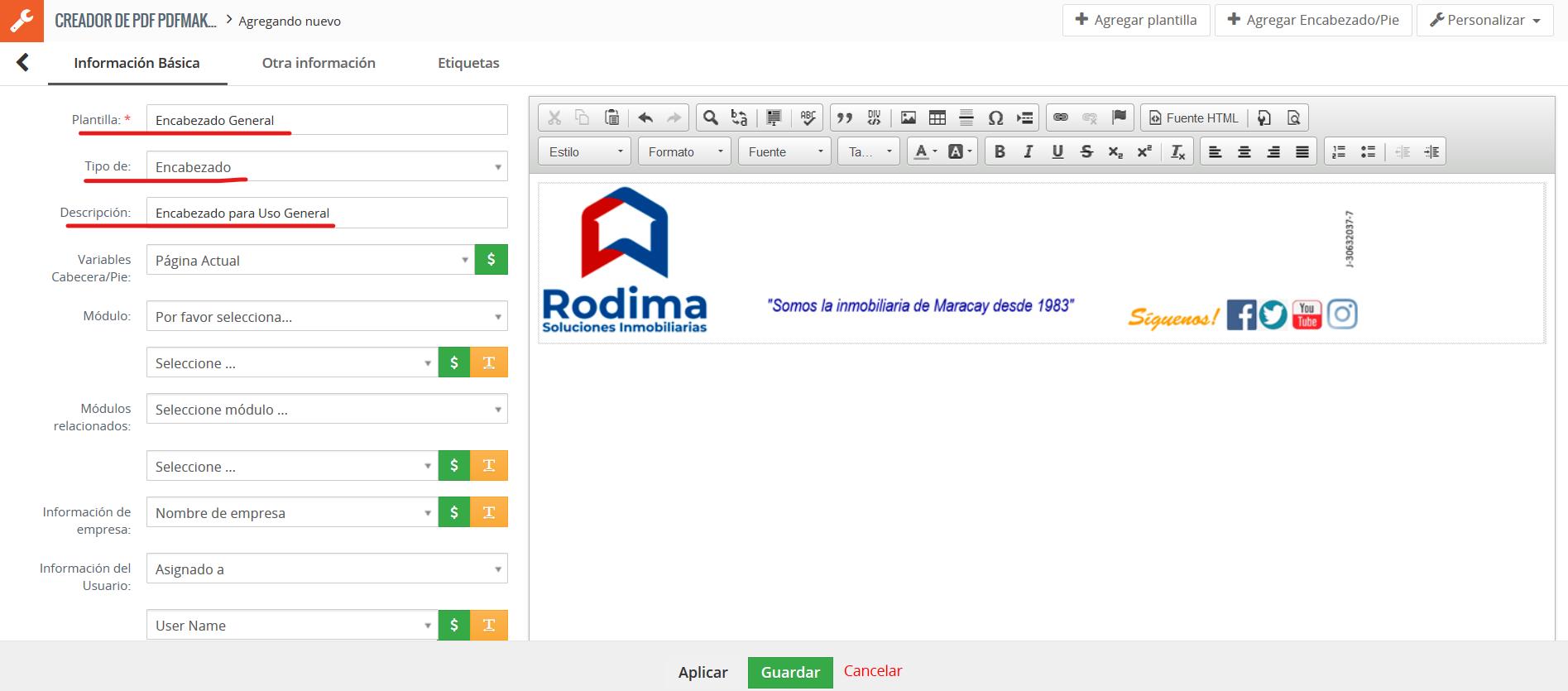 - Vaya a la pestaña Información Básica y defina el nombre de la plantilla