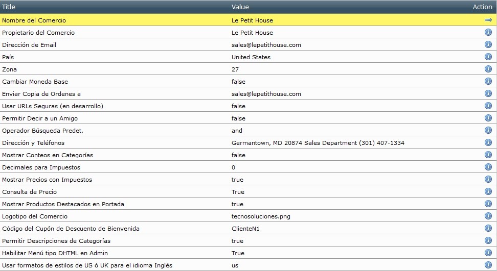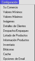 - Definición de otras variables relativas a: Clientes, Despachos, Listados, Manejo de Existencias, Ingreso al Portal, Manejo del Cache, Emails, Descargas, Compresión de archivos, Manejo de Sesiones, Editor de Contenidos, Manejo de Afiliados, Parámetros de Mantenimiento y Enlaces.