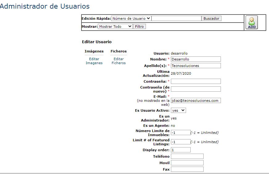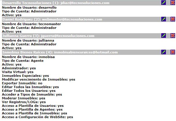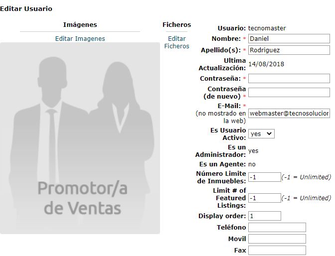 - Número límite de inmuebles: es muy útil para el caso de las personas registradas como Agente, ya que limita la cantidad de inmuebles que éste puede publicar en el portal. Si coloca “-1” el número de inmuebles será ilimitado.