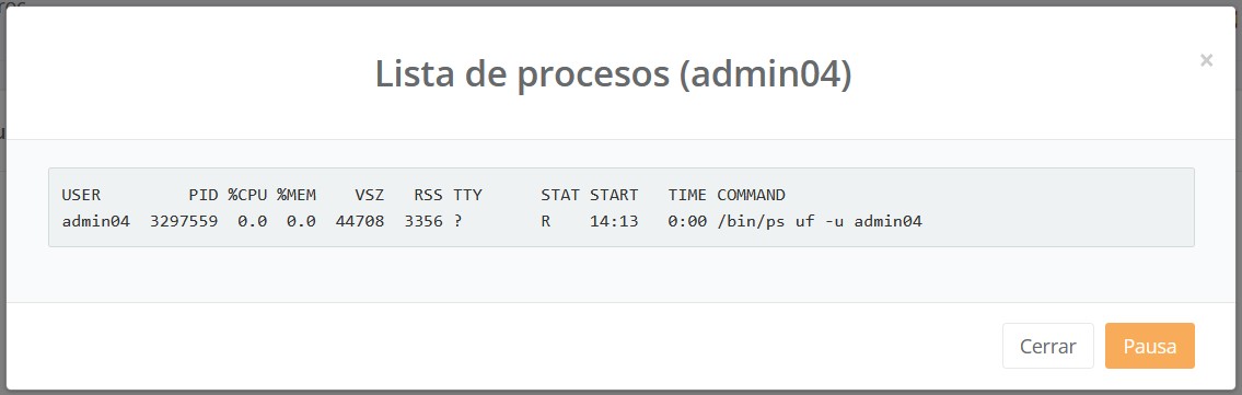La lista de procesos indica las tareas cargadas que se están realizando en tiempo real.