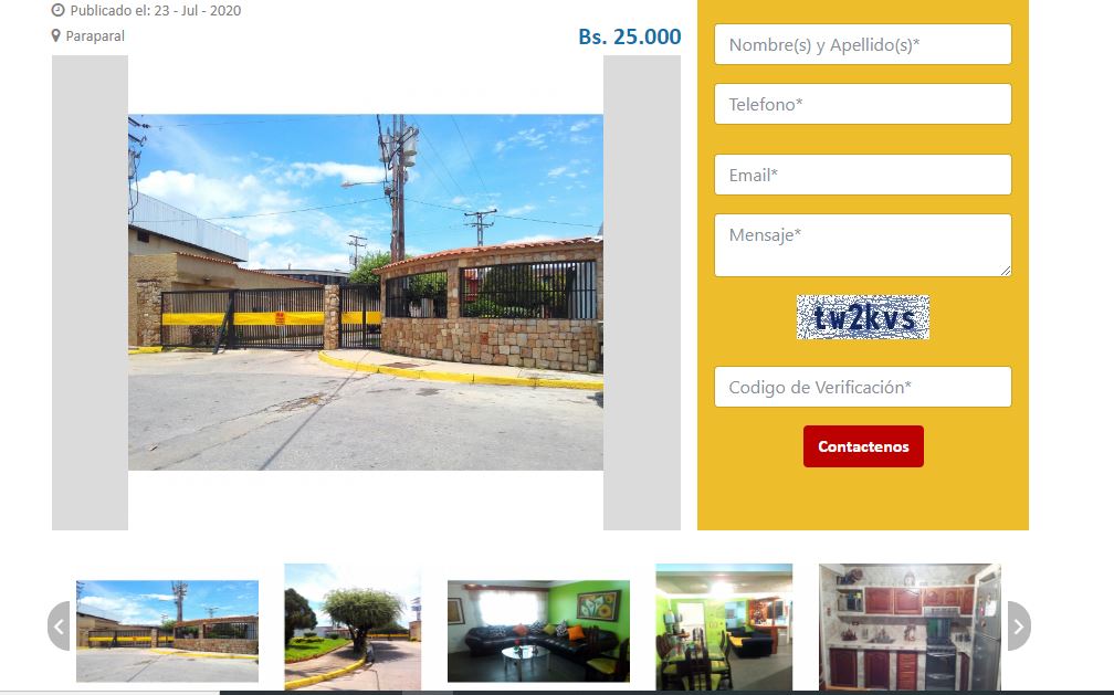 Al dar clic en el botón Ver Deralles, encontraremos una ficha completa de cada inmueble con una galería de imágenes, mapa de ubicación, descripción del inmueble, aspectos generales principales relacionados al Inmueble. Además, hay un formulario en la parte derecha.