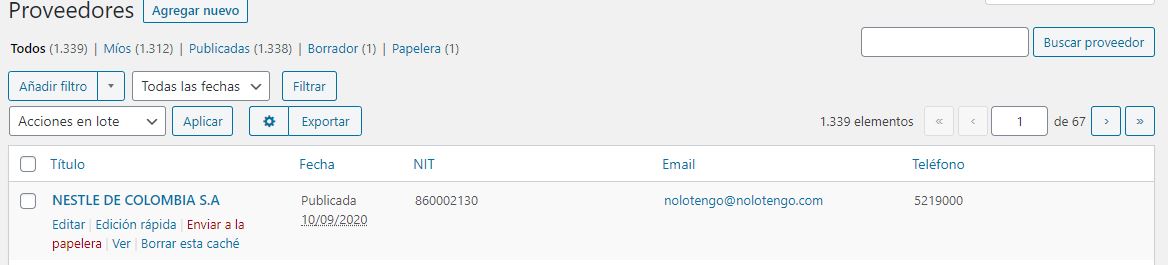 Una vez listado los proveedores podremos interactuar con cada uno de ellos colocando el cursor sobre el proveedor.